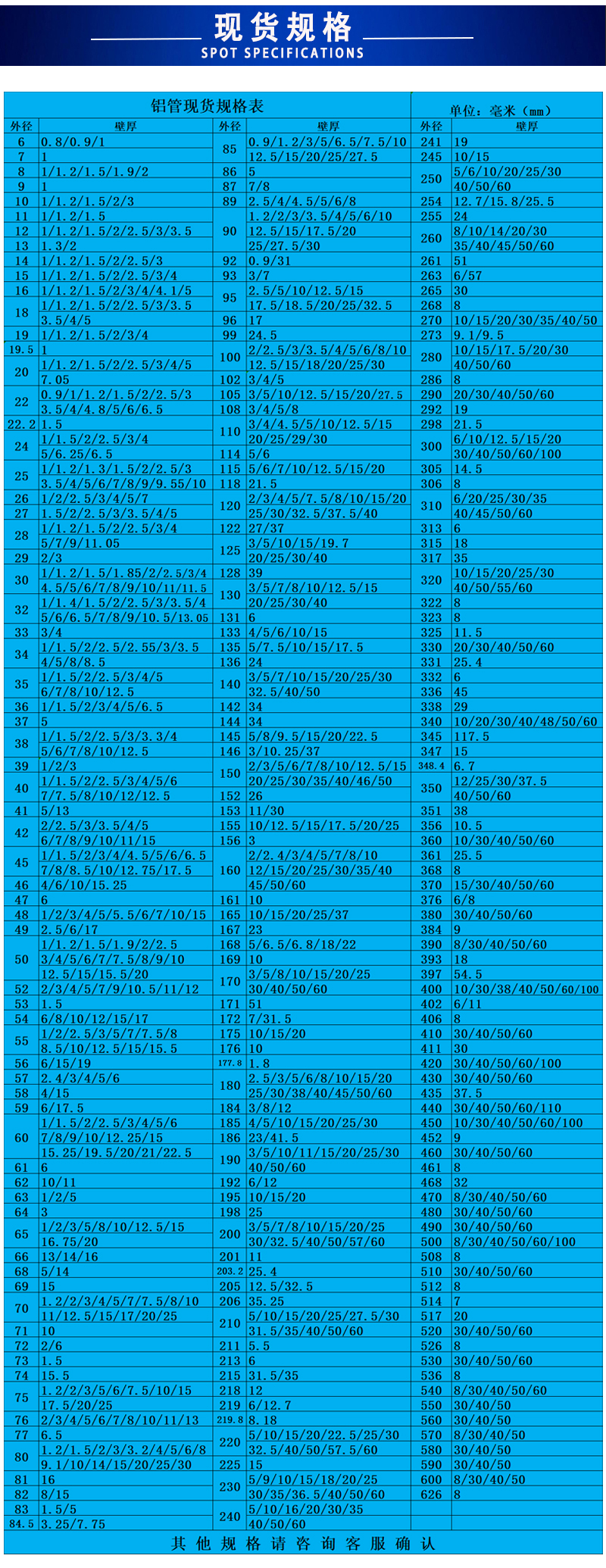 聚金鑫(上海)鋁業(yè)有限公司主要經(jīng)營無縫鋁管,鍛造鋁管,擠壓鋁管,鋁合金棒,鋁方棒,鋁排 5754鋁管_5182鋁管_鍛造鋁圓片_鍛造鋁管_6082鋁管_7075鋁棒 鋁管  鋁方管 無縫鋁管 厚壁鋁管 鋁板 鋁卷 鋁棒 鋁排 角鋁 鋁型材等有色金屬,所售產(chǎn)品均執(zhí)行鋁材行業(yè)標(biāo)準(zhǔn),有鋁型材擠壓生產(chǎn)線5條,噴涂、氧化生產(chǎn)線3條,配有CNC加工中心,以品質(zhì)保障、現(xiàn)貨規(guī)格多樣、效率高來滿足不同客戶需求,所售鋁型材主要應(yīng)用于零部件制造業(yè)、工程、煤礦、電力、汽車工業(yè)、建筑裝飾、能源化工、船舶制造業(yè)、機(jī)械工程、儀器設(shè)備、航空航天等行業(yè)。公司始終堅(jiān)持為客戶提供品質(zhì)保障的鋁材作為企業(yè)發(fā)展的根本,并為客戶提供系統(tǒng)的鋁材產(chǎn)品解決方案,以周到細(xì)致的服務(wù)回報廣大客戶.       主營產(chǎn)品材質(zhì)有:6063(T6普遍的合金材質(zhì)應(yīng)用廣泛) 6061(T4硬鋁管) 2A12(LY12多為無縫鋁管) 3A21(防銹硬鋁) 6005(厚壁鋁管) 7075(t5 T6航空鋁管) 5052(5056 5083海洋用鋁管) 1060(1050 1100純鋁管 多為鑄鋁管)     有縫鋁管規(guī)格 直徑4mm-506mm 壁厚0.7mm-50mm(材質(zhì)基本為6063 6061 6005焊接性能好,硬度一般,應(yīng)用多。     鍛打鋁管規(guī)格 直徑8mm-260mm 壁厚1mm-25mm(材質(zhì)全部為2024 也習(xí)慣稱之為LY12 或者2A12 硬度高 制作工藝為硬鋁棒穿孔)     防銹鋁管規(guī)格 直徑10mm-300mm 壁厚1mm-30mm(5系鋁管 有縫,多數(shù)用于輪船,游輪,汽艇上)7075現(xiàn)貨 直徑16mm-185mm 壁厚2mm-16mm(7075材質(zhì)多數(shù)為飛行器使用、其特點(diǎn) 密度低 質(zhì)量輕,硬度高于普通合金1.5-2倍!但是其價格也比同等規(guī)格的鋁管高了接近120%,所以價格決定了7075的鋁管多數(shù)用在較為貴、精密的設(shè)備上面)